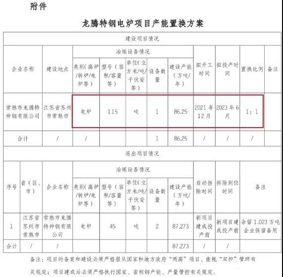 附件:常熟市龍騰特種鋼有限公司電爐升級改造項(xiàng)目產(chǎn)能置換方案