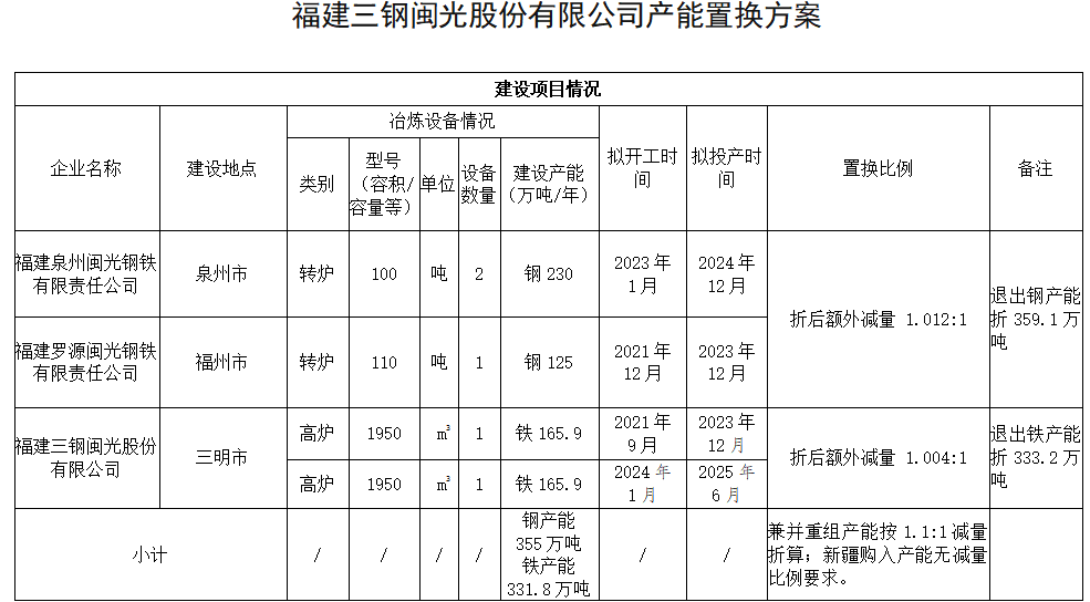 附件:福建三鋼閩光股份有限公司產(chǎn)能置換方案