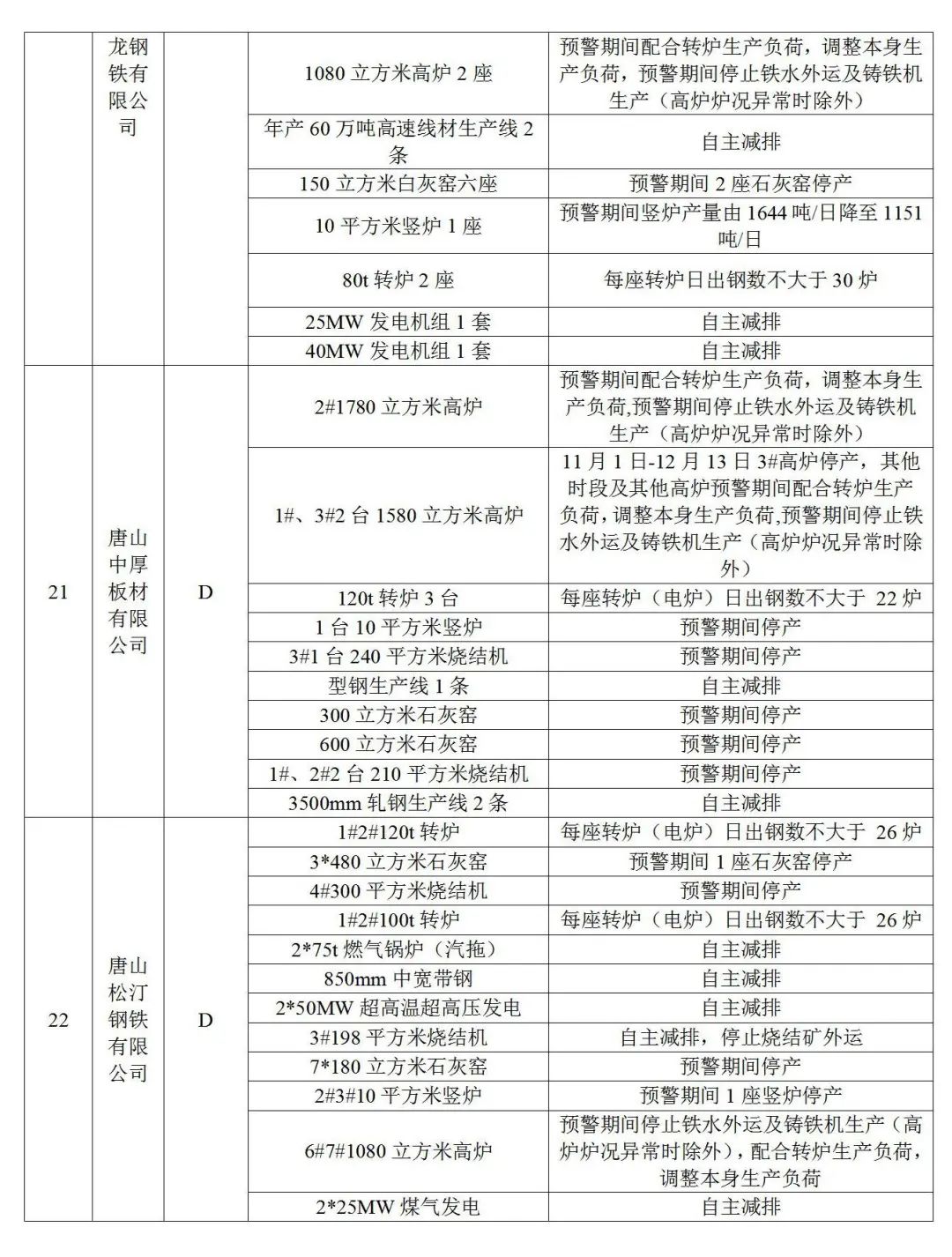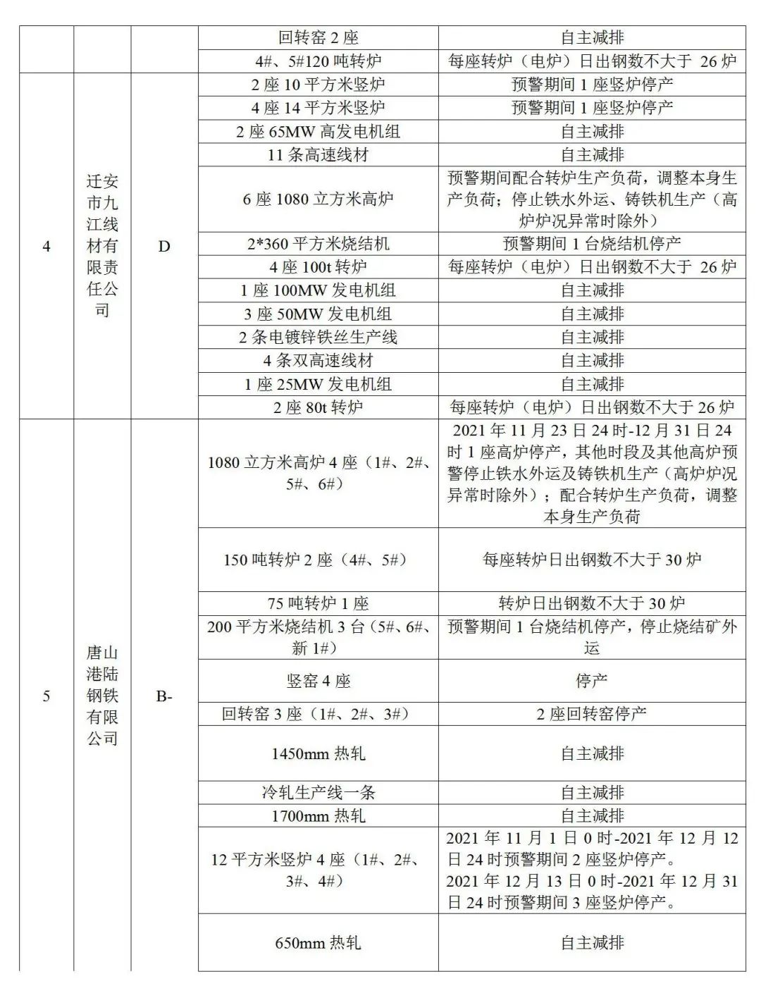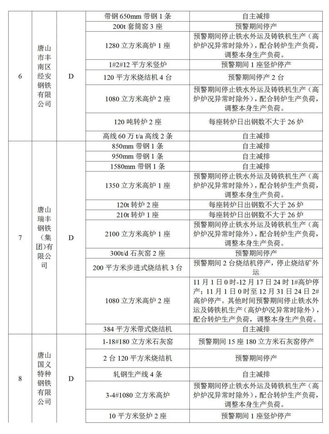 5.獨立軋鋼(不含冷軋),實施生產(chǎn)調(diào)控。