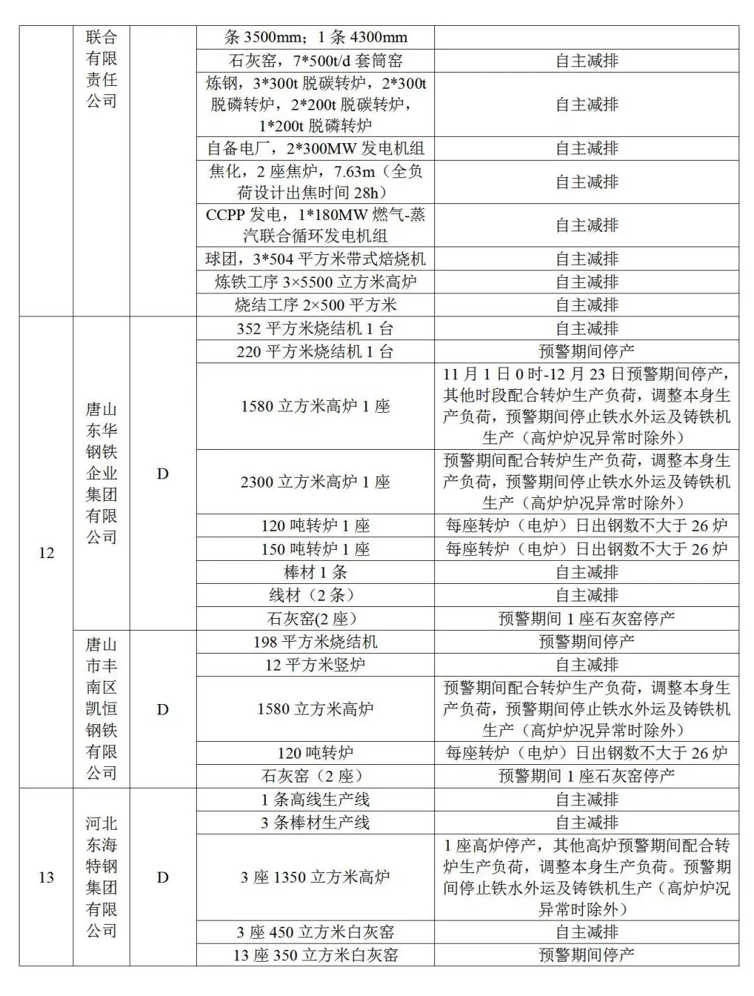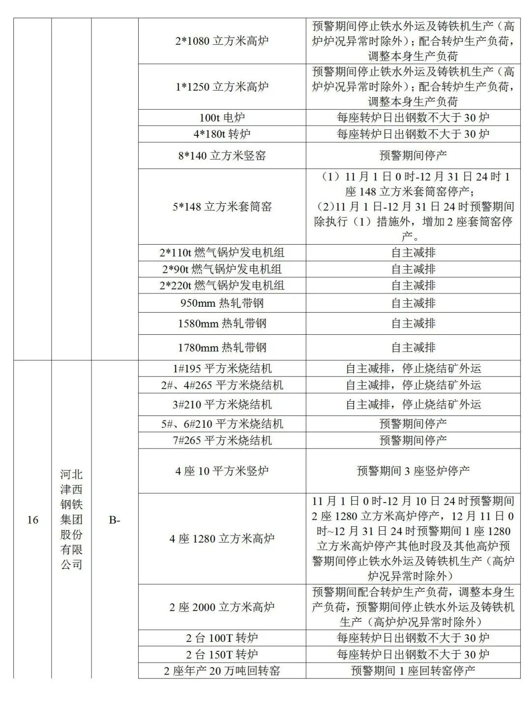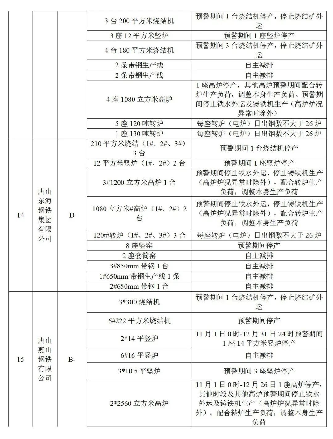 3.水泥熟料企業(yè)(特種水泥除外)。冀東啟新、冀東三友、冀東灤州、冀東唐山分公司、泓泰水泥自主減排;飛龍水泥、燕東水泥、燕南水泥、曙光強(qiáng)興水泥、磐石水泥、圣龍水泥、耀東水泥、弘也水泥旋窯實施生產(chǎn)調(diào)控。