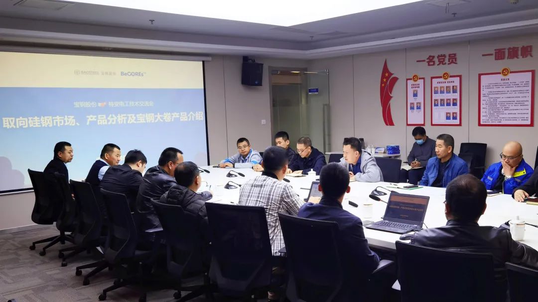 2021年10月26日,寶鋼股份硅鋼產(chǎn)銷研團隊、特變電工四大生產(chǎn)基地配電變壓器設(shè)計專家齊聚特變電工武清基地,共同研討新能源配電變壓器用取向硅鋼設(shè)計選型及價值最大化路徑。硅鋼銷售部向特變電工介紹了寶鋼尖端牌號研發(fā)及產(chǎn)品全序列化的供應(yīng)優(yōu)勢,并代表寶鋼產(chǎn)銷研團隊從取向硅鋼全行業(yè)發(fā)展、新能源配電牌號及供貨形態(tài)、技術(shù)經(jīng)濟性分析等角度向特變電工介紹了解決方案。雙方圍繞寶鋼解決方案中磁密選取、貫標方式、剪切技術(shù)等進行了深入探討。