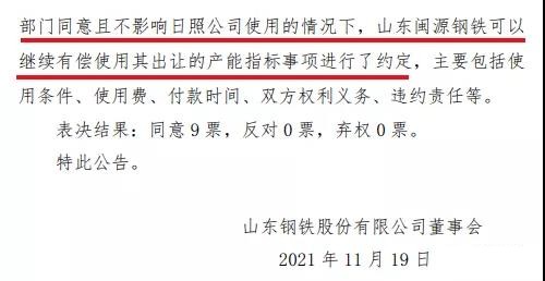 此前,山東鋼鐵于2019年12月13日公布,公司控股子公司山東鋼鐵集團日照有限公司(以下簡稱“日照公司”)擬以14.96億元的自籌資金購買山東閩源鋼鐵有限公司(以下簡稱“山東閩源鋼鐵”)位于濟南市章丘區(qū)的現(xiàn)有生鐵119萬噸、粗鋼170萬噸產(chǎn)能指標。日照公司購買鋼鐵產(chǎn)能指標,符合公司發(fā)展戰(zhàn)略,有利于公司未來生產(chǎn)經(jīng)營的發(fā)展,為做強做優(yōu)做大鋼鐵主業(yè)打下堅實基礎(chǔ)。