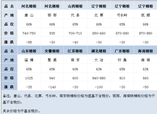 表一、國(guó)內(nèi)重點(diǎn)市場(chǎng)價(jià)格漲跌變化表
