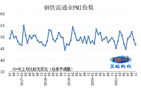 11月份鋼鐵流通企業(yè)銷售量指數(shù)和訂單指數(shù)分別為43.8%和42.8%,分別較上月下降4.2和4.7個(gè)百分點(diǎn),在收縮區(qū)間內(nèi)繼續(xù)下降,國內(nèi)鋼材市場前期受到高價(jià)位鋼價(jià)的影響,市場采購需求有所不足,但鋼價(jià)大幅下挫后,下游需求開始有所放量,但整體來看,傳統(tǒng)需求淡季的影響正在逐步顯現(xiàn)。