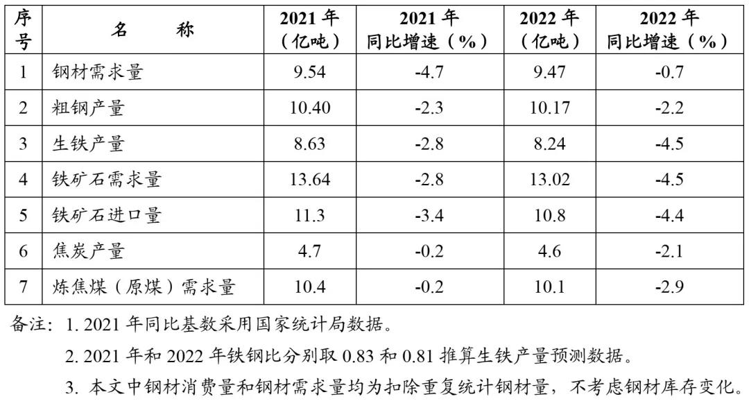 2021年和2022年我國鋼鐵需求預(yù)測(cè)表