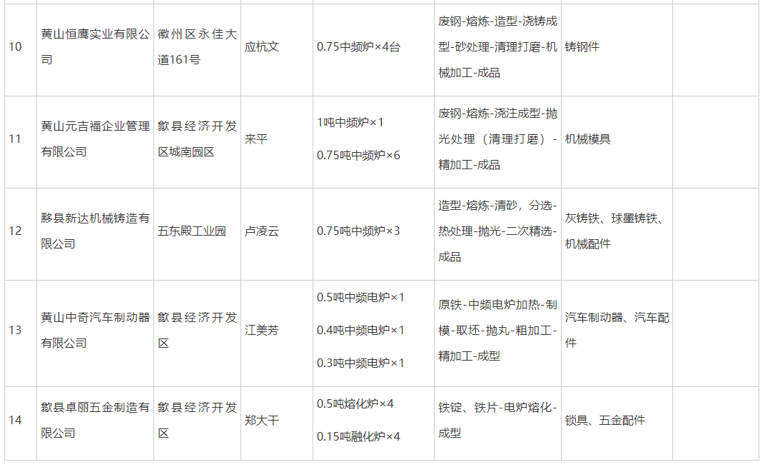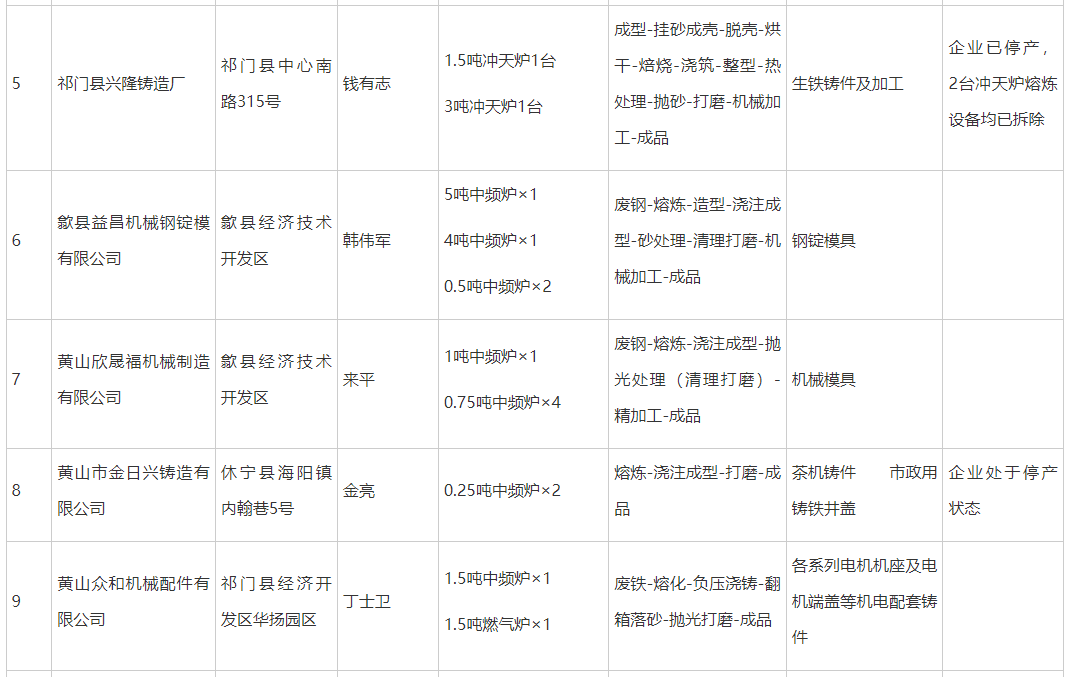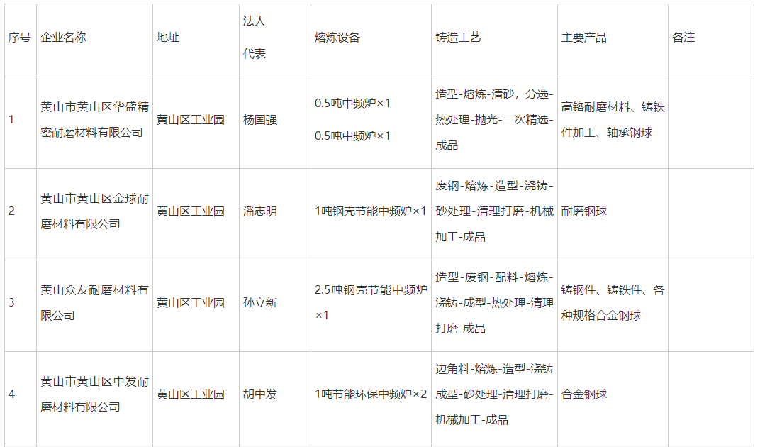 附件:黃山市鋼鐵(鑄造類)工業(yè)企業(yè)公告名單