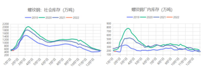 地產(chǎn)政策底顯現(xiàn),但政策傳導(dǎo)到需求端需要時間,冬季現(xiàn)實(shí)需求逐步走弱,疫情多地散發(fā),或?qū)⒓铀傩枨蟮幕芈洹6┙o端復(fù)產(chǎn)推進(jìn),上周產(chǎn)量回升較快??傮w供需階段性走弱,螺紋庫存開始累積。在明年春季需求旺盛預(yù)期的支撐下,冬儲熱情較高,預(yù)計春節(jié)前后螺紋價格大概率震蕩運(yùn)行。