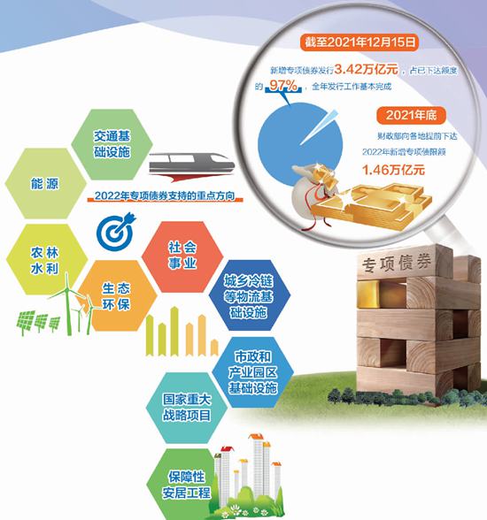 作為積極財(cái)政政策的重要工具,2022年專(zhuān)項(xiàng)債券將在穩(wěn)投資、穩(wěn)增長(zhǎng)中繼續(xù)發(fā)揮積極作用,為穩(wěn)定宏觀經(jīng)濟(jì)大盤(pán)提供有力支撐。