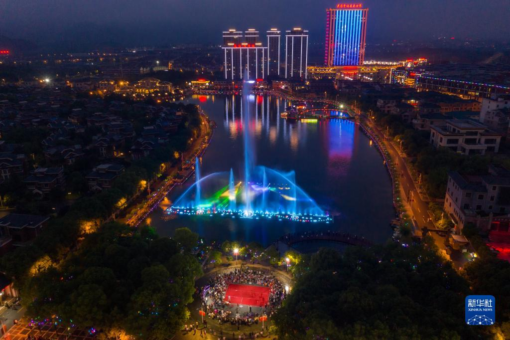 這是2021年6月4日拍攝的浙江省東陽市花園村夜景(無人機(jī)照片)。新華社記者 徐昱 攝