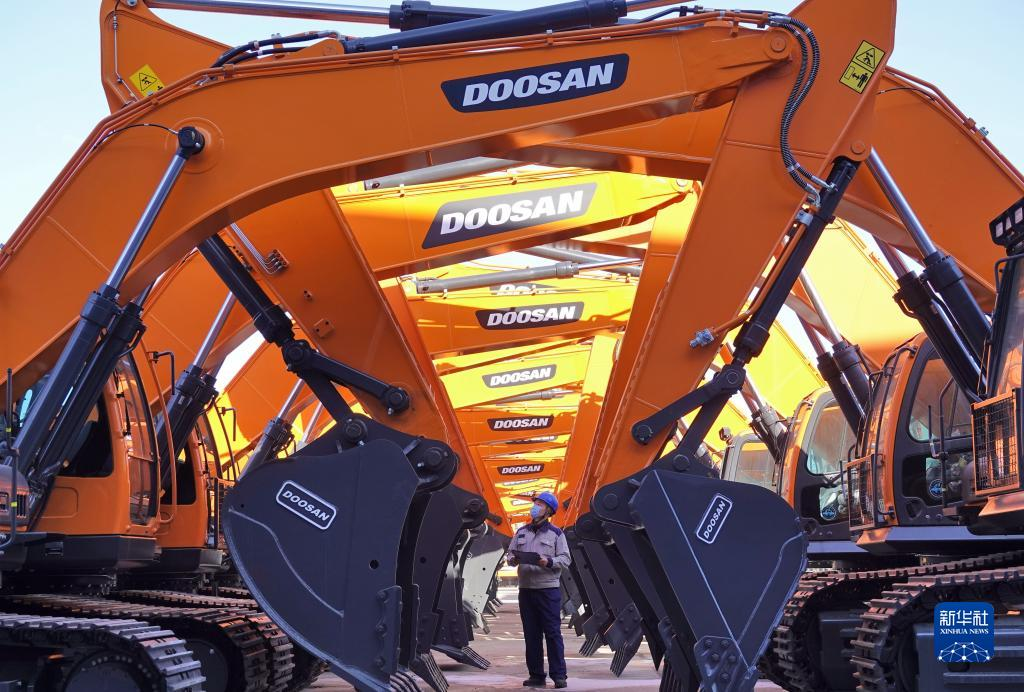 1月17日,在山東煙臺開發(fā)區(qū)一家工程機(jī)械有限公司,工作人員對出廠機(jī)械設(shè)備進(jìn)行檢查。新華社發(fā)(唐克 攝)