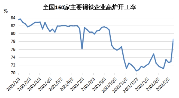 據(jù)蘭格云商平臺(tái)檢測數(shù)據(jù)顯示,截止到3月18日全國主要160家鋼鐵企業(yè)高爐開工率為78.55%,環(huán)比上漲5.74個(gè)百分點(diǎn),基本恢復(fù)至采暖季之前的水平,較當(dāng)時(shí)均值上漲1.43個(gè)百分點(diǎn)。3月18日數(shù)據(jù)顯示,蘭格鋼鐵網(wǎng)調(diào)查的全國160家主要鋼鐵企業(yè)中,有81家鋼廠134座高爐進(jìn)行檢修,比上周減少27座。