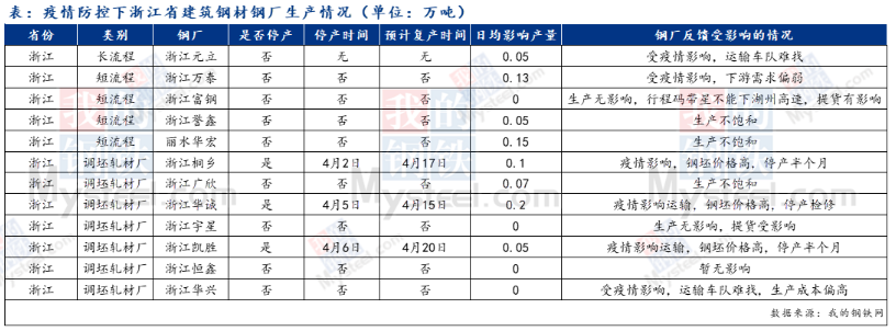 目前浙江省內(nèi)鋼廠大多處于不飽和生產(chǎn)狀態(tài),受疫情影響,鋼廠物流運輸受阻,下游需求有所減弱,疊加鋼坯價格高位運行,部分調(diào)坯軋材廠停產(chǎn)檢修。具體情況如下: