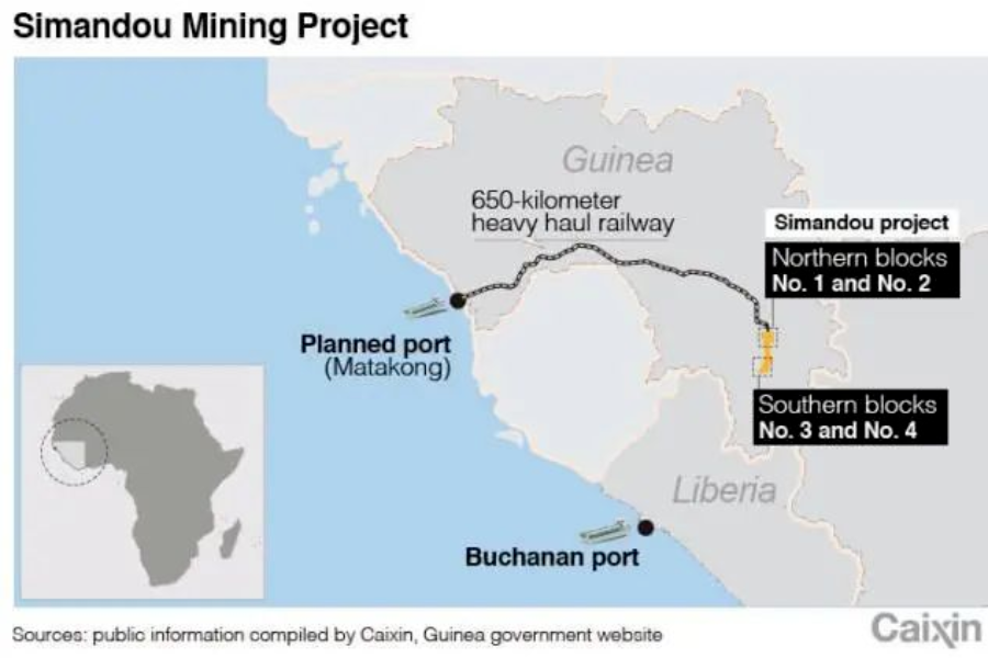 但幾內(nèi)亞政府表示,任何礦山開發(fā)商都必須修建橫跨該國的鐵路,以保證西芒杜開采的鐵礦石從幾內(nèi)亞本國的港口出口。