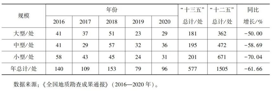 表1 “十三五”期間全國(guó)新發(fā)現(xiàn)礦產(chǎn)數(shù)量
