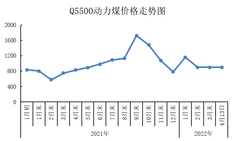 圖6 2021年1月-2022年4月中旬Q5500動(dòng)力煤價(jià)格走勢