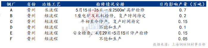 按照國(guó)務(wù)院安委會(huì)統(tǒng)一部署,國(guó)務(wù)院安委會(huì)綜合檢查組第十六組到貴州開展安全生產(chǎn)大檢查綜合督導(dǎo)和2021年度安全生產(chǎn)消防工作考核巡查。4月份檢查組進(jìn)駐貴州,貴州地區(qū)開展安全大檢查,部分電爐企業(yè)受到影響,疊加鋼廠虧損,5月貴州區(qū)域部分鋼廠繼續(xù)停產(chǎn)減產(chǎn)。