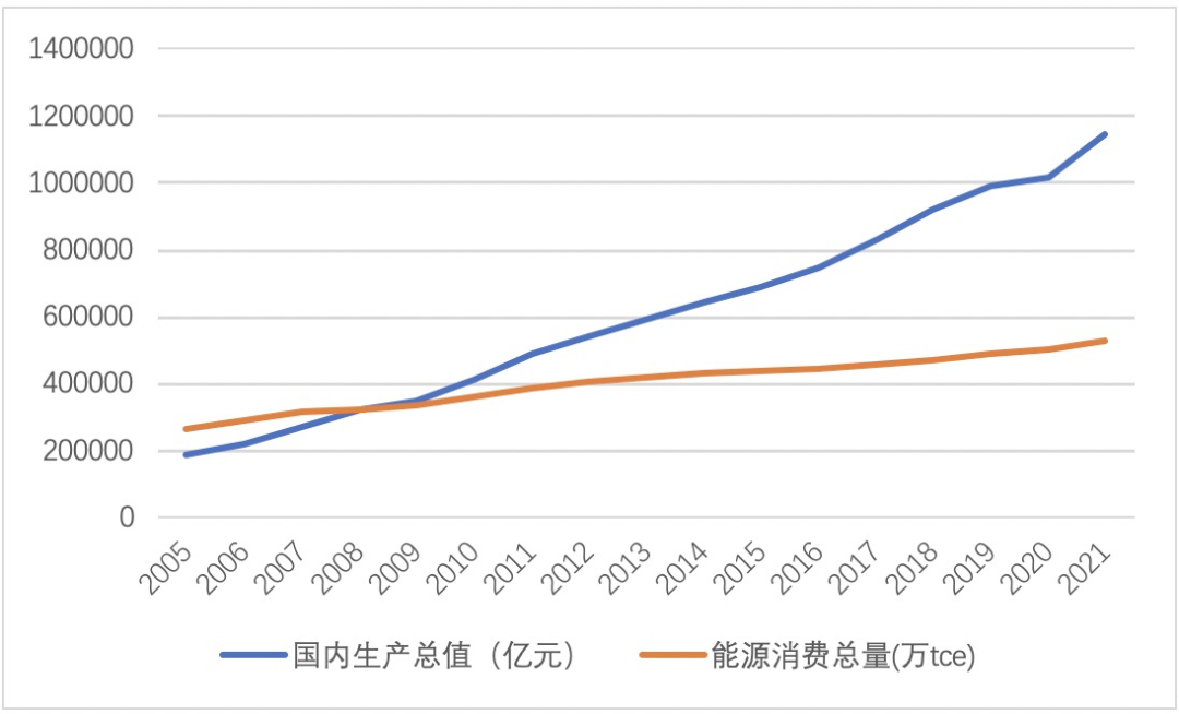 圖1 2005-2020年我國能源消耗總量與國內(nèi)生產(chǎn)總值變化趨勢(數(shù)據(jù)來源:國家統(tǒng)計局)