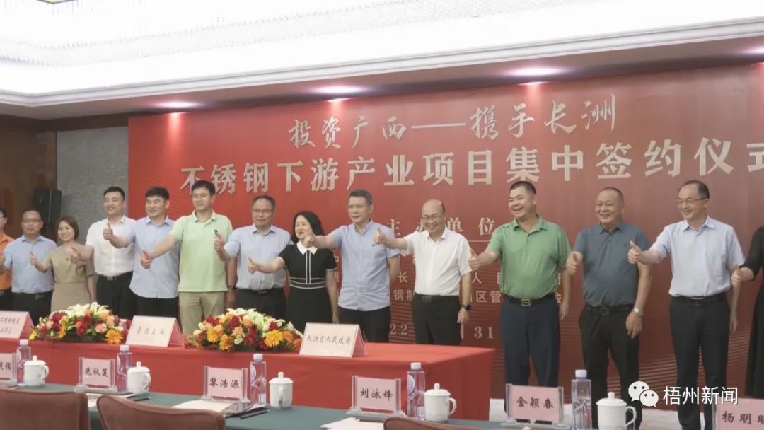 廣西工業(yè)振興特派員駐梧州市工作隊(duì)隊(duì)長、自治區(qū)工業(yè)和信息化廳一級巡視員彭健銘,市領(lǐng)導(dǎo)李廣勇、冼秋蓮參加了簽約儀式。儀式上,梧州市永達(dá)集團(tuán)抗菌超純新型合金材料制品智能生產(chǎn)中心項(xiàng)目、佛山市南海再輝不銹鋼制品有限公司高端不銹鋼精品深加工項(xiàng)目、梧州市聚力新材料有限公司高端不銹鋼精品深加工項(xiàng)目、梧州市金海不銹鋼有限公司下游制品項(xiàng)目、鑫峰綠色高等級冷連軋不銹鋼BA板及制管生產(chǎn)線項(xiàng)目和佛山市利中泰鋼業(yè)高端不銹鋼制品深加工項(xiàng)目順利簽約,總投資額達(dá)33.5億元。