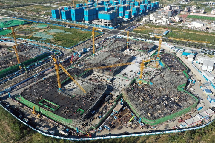 9月7日拍攝的雄安新區(qū)啟動區(qū)中國星網(wǎng)雄安新區(qū)總部大樓建設(shè)施工現(xiàn)場(無人機(jī)照片)。新華社記者朱旭東攝