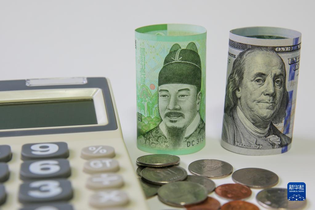 這是9月22日在韓國首爾拍攝的韓元和美元紙幣。(新華社記者王益亮攝)