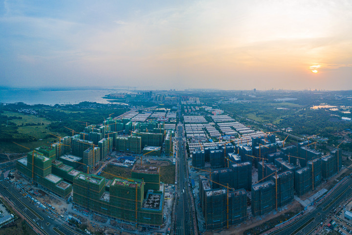 這是2022年9月26日在海南洋浦經(jīng)濟(jì)開發(fā)區(qū)拍攝的建設(shè)中的東部生活區(qū)(無人機(jī)全景照片)。新華社記者蒲曉旭 攝