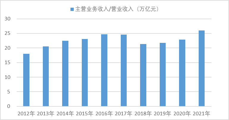 2012-2021年機械工業(yè)主營業(yè)務(wù)收入/營業(yè)收入