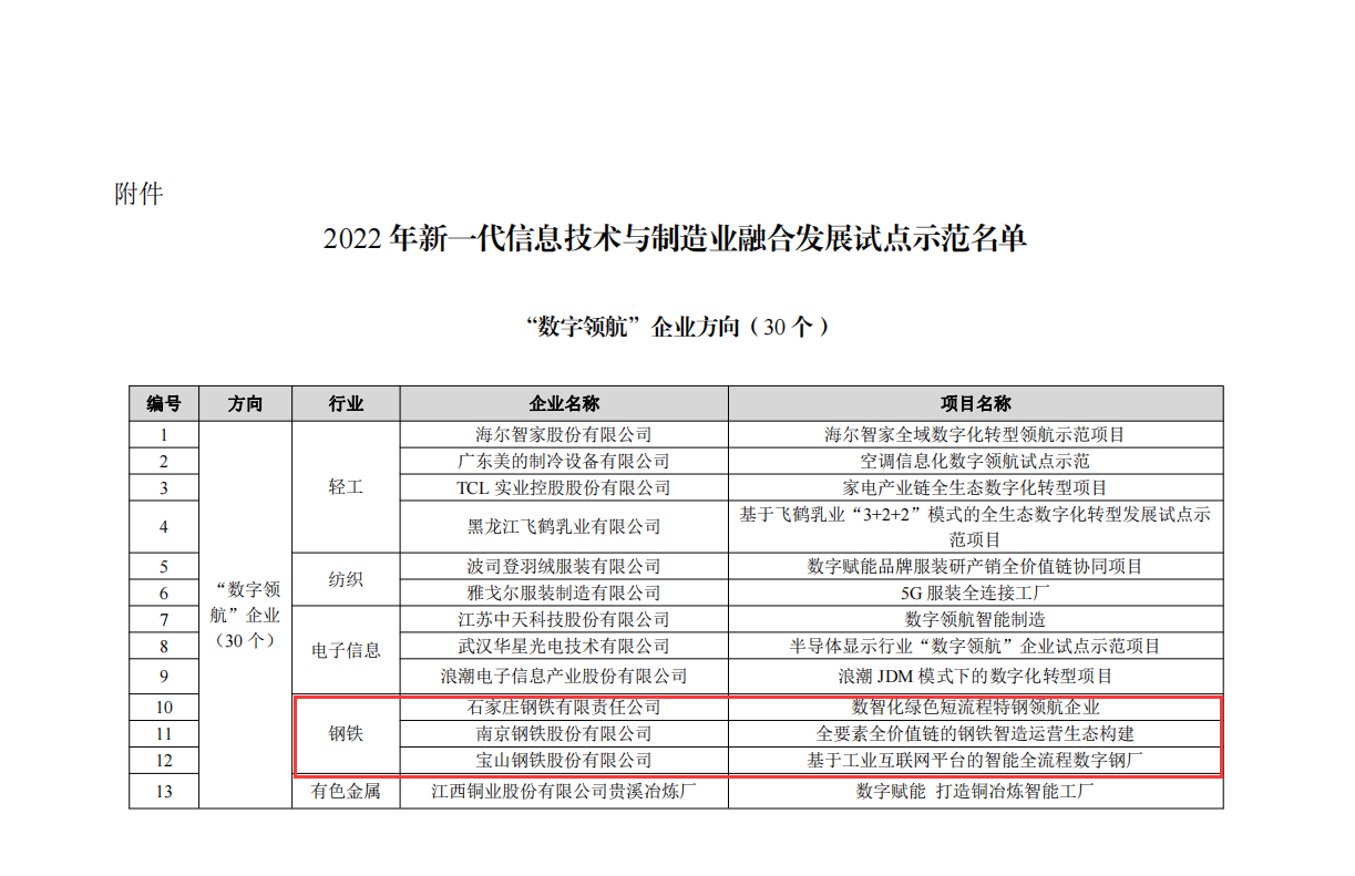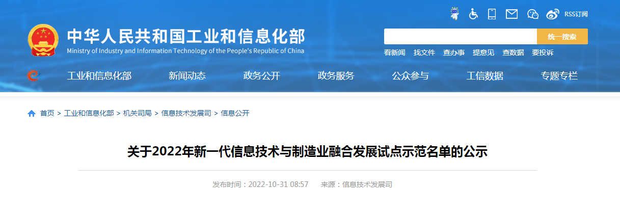 根據(jù)《工業(yè)和信息化部辦公廳關(guān)于組織開(kāi)展2022年新一代信息技術(shù)與制造業(yè)融合發(fā)展試點(diǎn)示范申報(bào)工作的通知》(工信廳信發(fā)函〔2022〕196號(hào)),經(jīng)企業(yè)自主申報(bào)、地方推薦、專(zhuān)家評(píng)審等環(huán)節(jié),形成了2022年新一代信息技術(shù)與制造業(yè)融合發(fā)展試點(diǎn)示范名單。