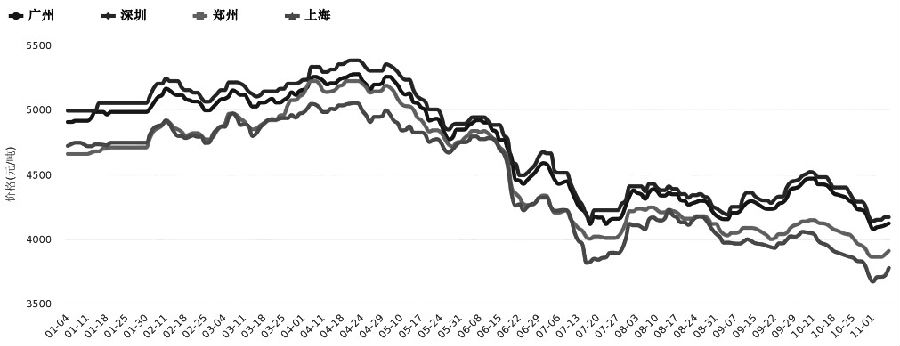 國慶節(jié)后黑色系期貨破位下跌,整體原料鐵礦石和雙焦大幅走低,鋼材期貨價格也跟隨下行。由于需求環(huán)比改善不明顯,現(xiàn)貨價格上漲乏力,期貨價格更是一路向下。疊加建材市場淡季即將來臨,需求預(yù)期進一步弱化,鋼材期貨價格跌入冰點。以滬鋼2301合約為例,其價格從節(jié)后開市的最高3893元/噸跌到最低3389元/噸,月內(nèi)跌幅達(dá)15%以上,并創(chuàng)近兩年來新低。