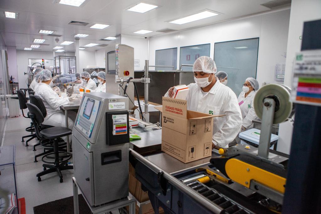 這是2022年8月31日,工作人員在巴西圣保羅州布坦坦研究所的克爾來福新冠疫苗生產(chǎn)線上工作。新華社發(fā)(巴西布坦坦研究所供圖)