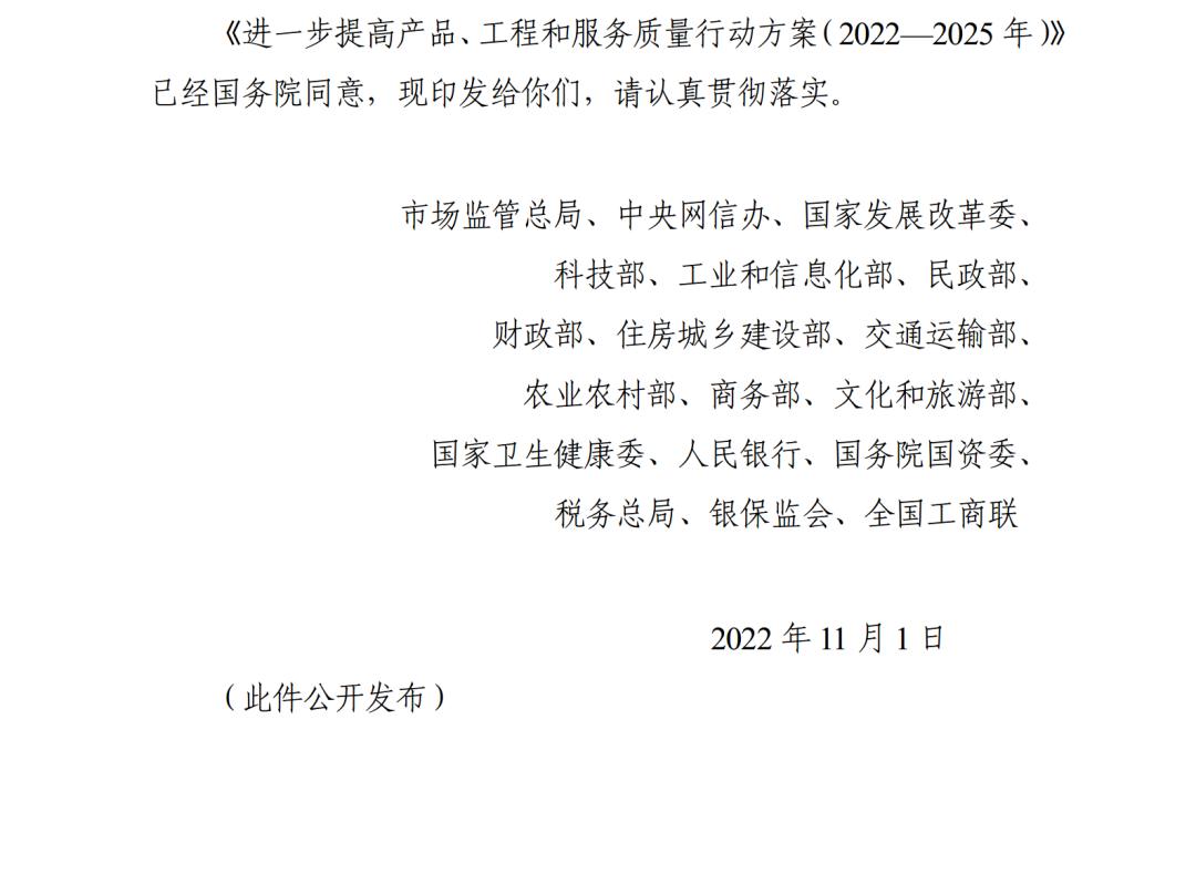 進一步提高產(chǎn)品、工程和服務質(zhì)量行動方案(2022—2025年)