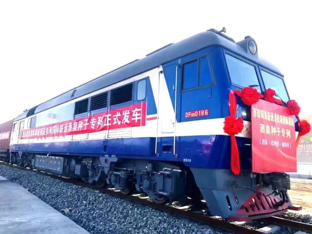 11月17日,西部陸海新通道(酒泉—欽州港—鹿特丹)鐵海國際聯(lián)運班列首發(fā)。(受訪者供圖)