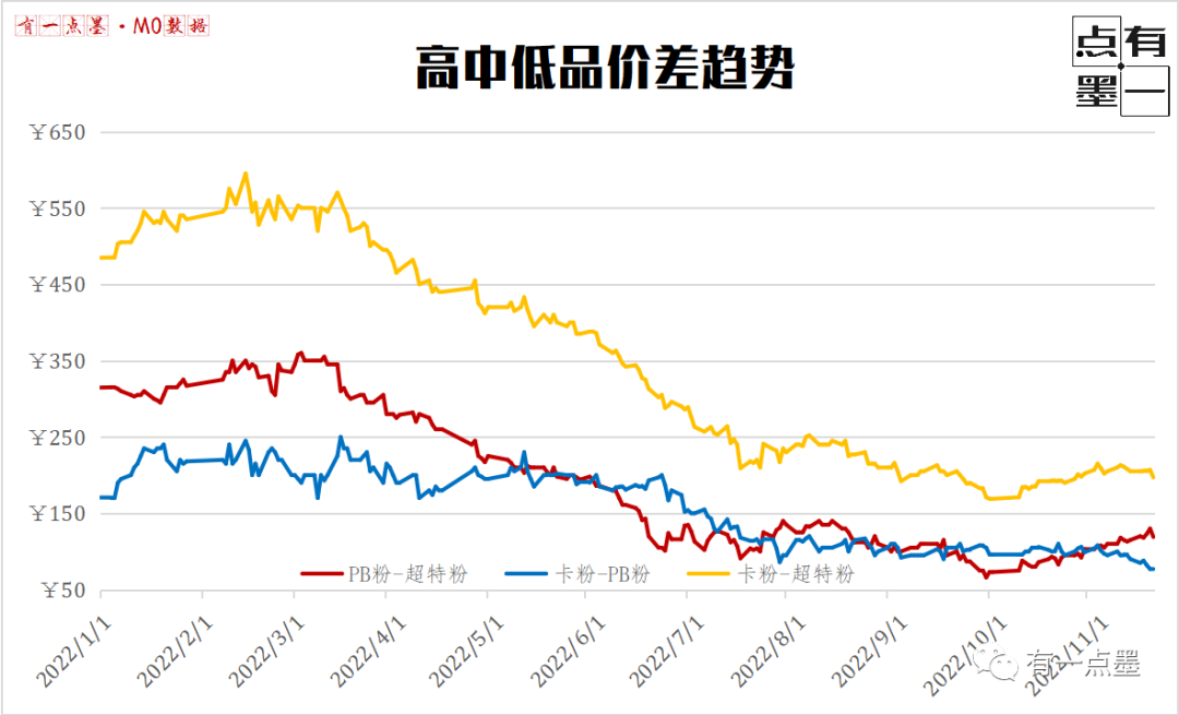 我們從高低品、高中品的價(jià)差仍然走弱而同時(shí)中低品價(jià)差走強(qiáng)的趨勢(shì)可以推斷,中品礦近期價(jià)格不斷堅(jiān)挺。