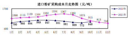 2022年1-10月,煉焦煤累計(jì)采購(gòu)成本同比增長(zhǎng)38.08%;冶金焦同比增長(zhǎng)7.54%;國(guó)產(chǎn)鐵精礦同比下降26.47%,進(jìn)口粉礦同比下降26.43%;廢鋼同比下降2.33%。