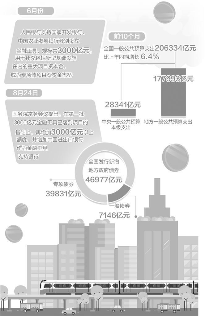為解決重大項(xiàng)目資本金到位難等問題,今年6月份,中國人民銀行支持國家開發(fā)銀行、中國農(nóng)業(yè)發(fā)展銀行分別設(shè)立金融工具,規(guī)模共3000億元,用于補(bǔ)充包括新型基礎(chǔ)設(shè)施在內(nèi)的重大項(xiàng)目資本金,或?yàn)閷m?xiàng)債項(xiàng)目資本金搭橋。8月份,國務(wù)院常務(wù)會議提出,在第一批3000億元金融工具已落到項(xiàng)目的基礎(chǔ)上,再增加3000億元以上額度,并增加中國進(jìn)出口銀行作為金融工具支持銀行。11月16日,人民銀行公布的最新數(shù)據(jù)顯示,10月末,兩批金融工具合計(jì)已投放7400億元,有力補(bǔ)充了一批重大項(xiàng)目的資本金。