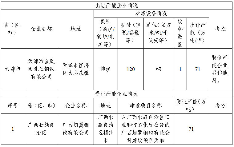 按照《國務(wù)院關(guān)于化解產(chǎn)能嚴(yán)重過剩矛盾的指導(dǎo)意見》《國務(wù)院關(guān)于鋼鐵行業(yè)化解過剩產(chǎn)能實(shí)現(xiàn)脫困發(fā)展的意見》和《鋼鐵行業(yè)產(chǎn)能置換實(shí)施辦法》要求,現(xiàn)將天津冶金集團(tuán)軋三鋼鐵有限公司產(chǎn)能出讓情況予以公示,歡迎社會(huì)公眾進(jìn)行監(jiān)督。聯(lián)系電話:23313526。公示期為20個(gè)工作日。