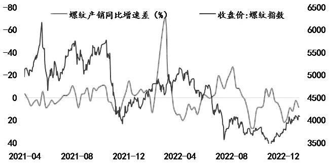 圖為螺紋鋼產銷同比增速差走勢
