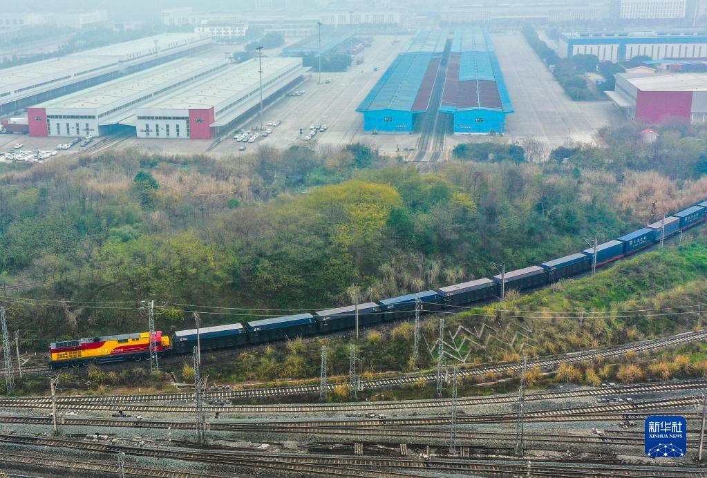 1月22日,農(nóng)歷新年首趟西部陸海新通道鐵海聯(lián)運班列從重慶團結(jié)村中心站發(fā)車(無人機照片)。新華社記者 劉潺 攝