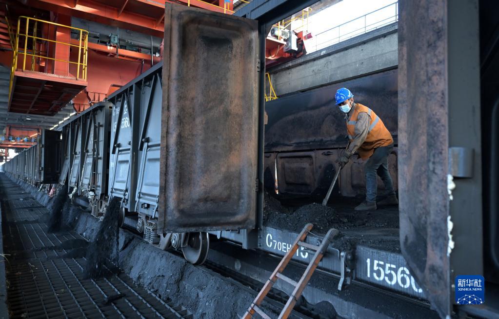 1月19日,在大唐安徽發(fā)電有限公司淮南洛河發(fā)電分公司,工作人員進行卸煤作業(yè)。新華社記者 周牧 攝