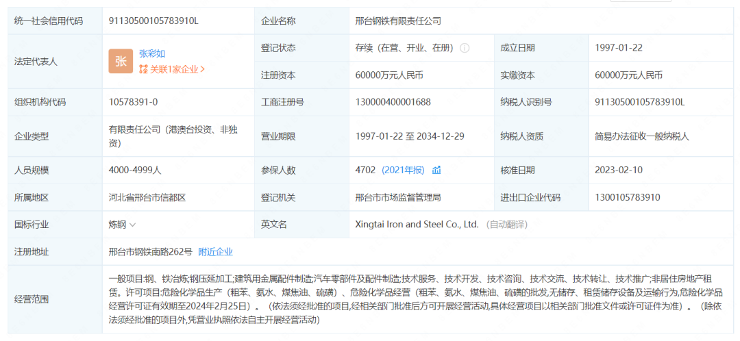 “一般項(xiàng)目:鋼、鐵冶煉;鋼壓延加工;建筑用金屬配件制造;汽車(chē)零部件及配件制造;技術(shù)服務(wù)、技術(shù)開(kāi)發(fā)、技術(shù)咨詢(xún)、技術(shù)交流、技術(shù)轉(zhuǎn)讓、技術(shù)推廣;非居住房地產(chǎn)租賃。許可項(xiàng)目:危險(xiǎn)化學(xué)品生產(chǎn)(粗苯、氨水、煤焦油、硫磺)、危險(xiǎn)化學(xué)品經(jīng)營(yíng)(粗苯、氨水、煤焦油、硫磺的批發(fā),無(wú)儲(chǔ)存、租賃儲(chǔ)存設(shè)備及運(yùn)輸行為,危險(xiǎn)化學(xué)品經(jīng)營(yíng)許可證有效期至2024年2月25日)。(依法須經(jīng)批準(zhǔn)的項(xiàng)目,經(jīng)相關(guān)部門(mén)批準(zhǔn)后方可開(kāi)展經(jīng)營(yíng)活動(dòng),具體經(jīng)營(yíng)項(xiàng)目以相關(guān)部門(mén)批準(zhǔn)文件或許可證件為準(zhǔn))。(除依法須經(jīng)批準(zhǔn)的項(xiàng)目外,憑營(yíng)業(yè)執(zhí)照依法自主開(kāi)展經(jīng)營(yíng)活動(dòng))”