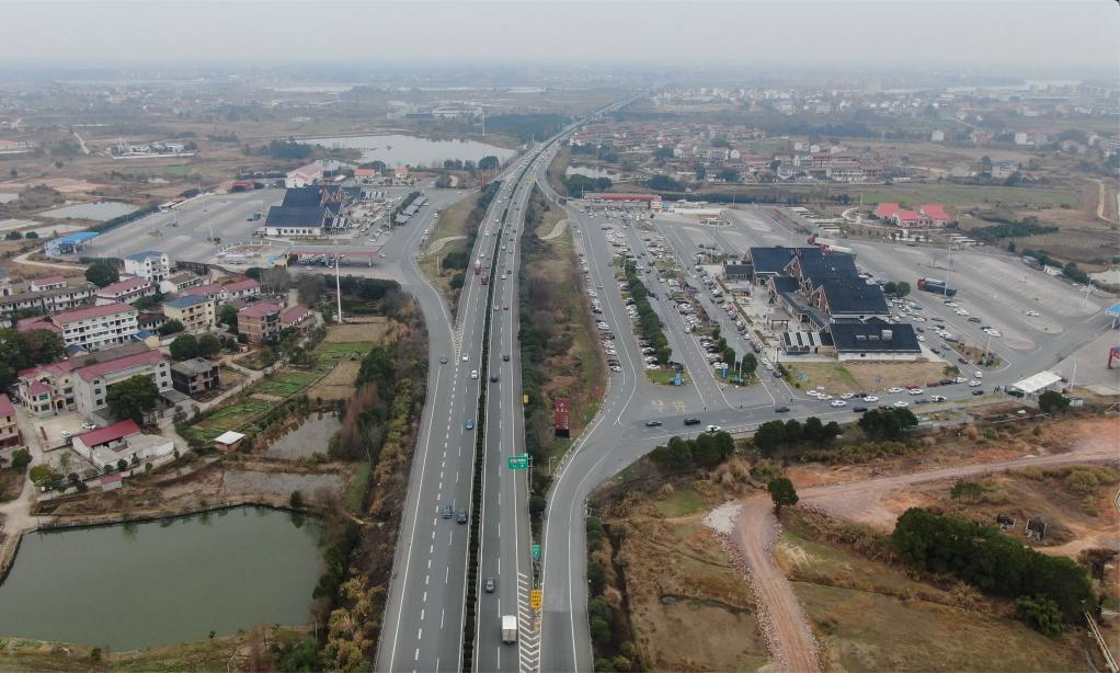 圖為滬昆高速公路江西段及其沿線的龍虎山服務區(qū)(無人機照片)。新華社記者郭杰文 攝