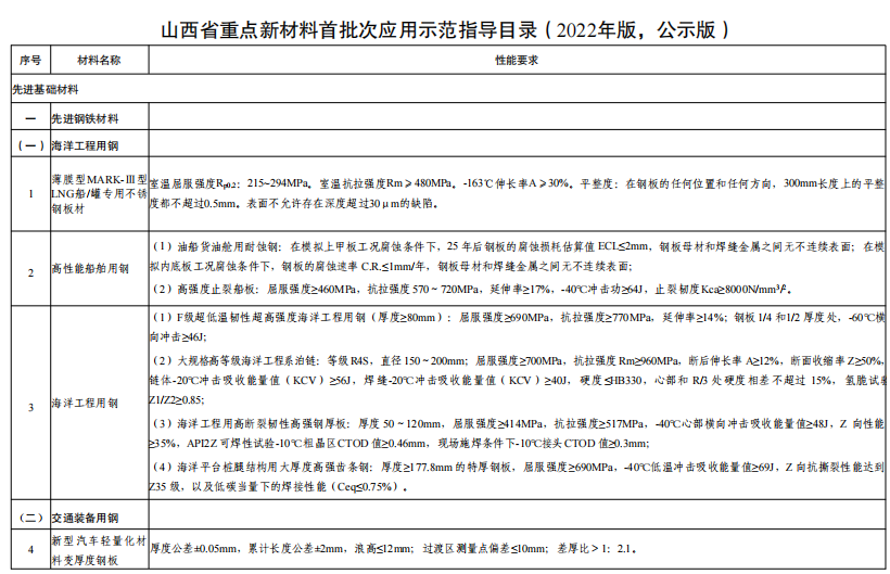 為加快推進(jìn)山西省新材料應(yīng)用示范,根據(jù)《重點新材料產(chǎn)品首批次應(yīng)用保險補(bǔ)償機(jī)制管理辦法》(晉工信新材料字〔2022〕116號),我廳組織開展了《山西省重點新材料首批次應(yīng)用示范指導(dǎo)目錄(2022年版)》的起草編制工作,經(jīng)廣泛征集、企業(yè)申報、工信部門審核和專家評審等程序,形成了《山西省重點新材料首批次應(yīng)用示范指導(dǎo)目錄(2022年版)》,現(xiàn)予以公示,公示期為2月21日—2月27日。