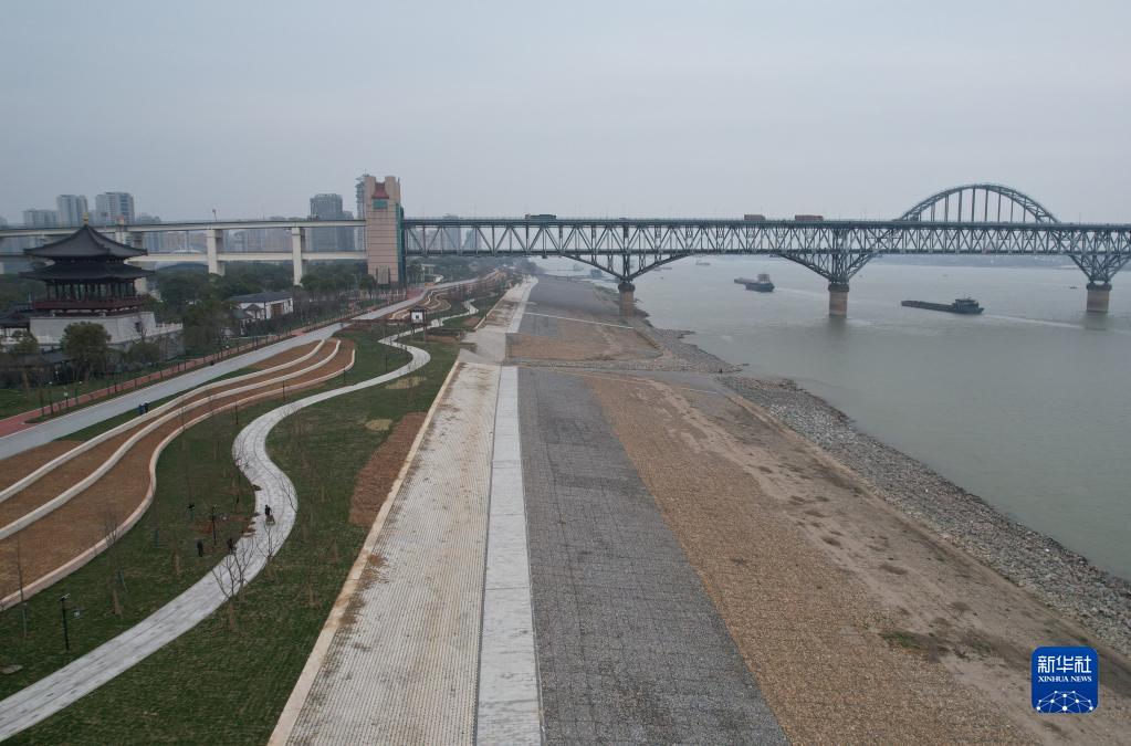這是位于九江市區(qū)的長江干流江西段崩岸應急治理工程已經完成治理的部分(2月22日攝,無人機照片)。新華社記者 劉詩平 攝
