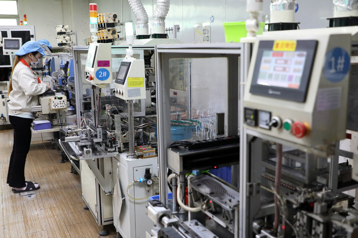 2月9日,廣東東莞市維斗科技股份有限公司員工在生產(chǎn)線作業(yè)。新華社記者黃國(guó)保 攝