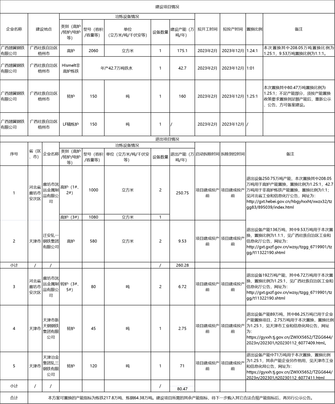 廣西翅冀鋼鐵鋼鐵產(chǎn)業(yè)升級項(xiàng)目產(chǎn)能置換方案公告