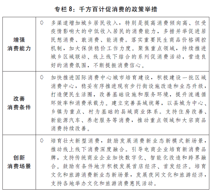 (計劃報告中的專欄8:千方百計促消費的政策舉措)