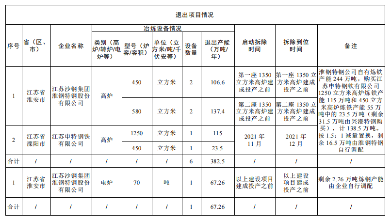 按照《國務(wù)院關(guān)于化解產(chǎn)能嚴(yán)重過剩矛盾的指導(dǎo)意見》、《國務(wù)院關(guān)于鋼鐵行業(yè)化解過剩產(chǎn)能實(shí)現(xiàn)脫困發(fā)展的意見》和《鋼鐵行業(yè)產(chǎn)能置換實(shí)施辦法》要求,我廳自2023年1月31日至2023年2月27日對江蘇沙鋼集團(tuán)淮鋼特鋼股份有限公司(以下簡稱淮鋼特鋼)高爐電爐綠色升級改造項(xiàng)目產(chǎn)能置換方案(變更后)進(jìn)行了公示,公示期間未收到異議?,F(xiàn)予公告,歡迎社會公眾進(jìn)行監(jiān)督。