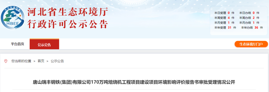 近日,河北生態(tài)環(huán)境廳發(fā)布受理情況公示,對(duì)唐山市瑞豐鋼鐵(集團(tuán))有限公司(以下簡(jiǎn)稱“瑞豐鋼鐵公司”)申請(qǐng)建設(shè)項(xiàng)目環(huán)境影響評(píng)價(jià)報(bào)告表審批受理情況進(jìn)行公開(kāi),其中涉及該項(xiàng)目環(huán)境影響報(bào)告書(shū)(以下簡(jiǎn)稱環(huán)評(píng)文件)的基本內(nèi)容。