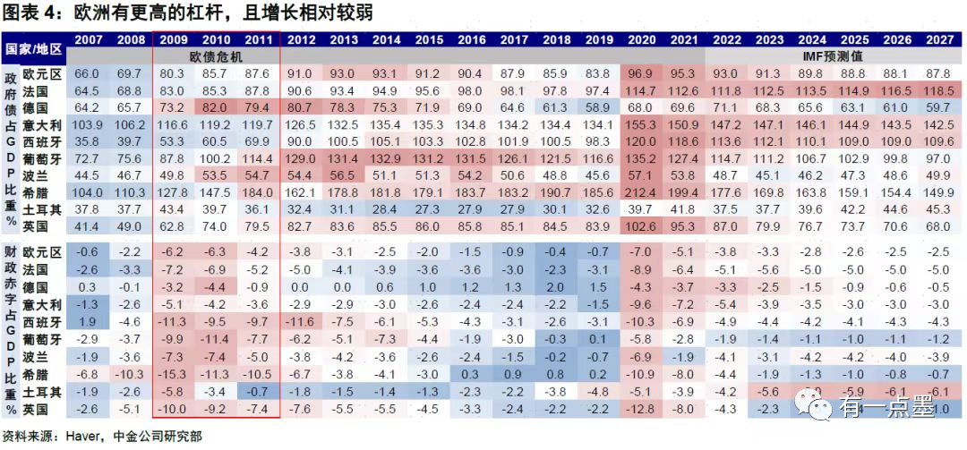 通過(guò)今天各路信息的發(fā)酵突然發(fā)現(xiàn),海外金融風(fēng)險(xiǎn)不僅是美國(guó)的硅谷銀行引發(fā)的一連串反應(yīng),而且是除了瑞士信貸之外,西歐、南歐等諸多國(guó)家都面臨高通脹的壓力、債務(wù)高杠桿的壓力等問(wèn)題(參照下圖所示)。有經(jīng)濟(jì)學(xué)家稱,若歐洲盲目跟進(jìn)美國(guó)的加息政策,后期恐面臨巨大的暴雷危機(jī)。