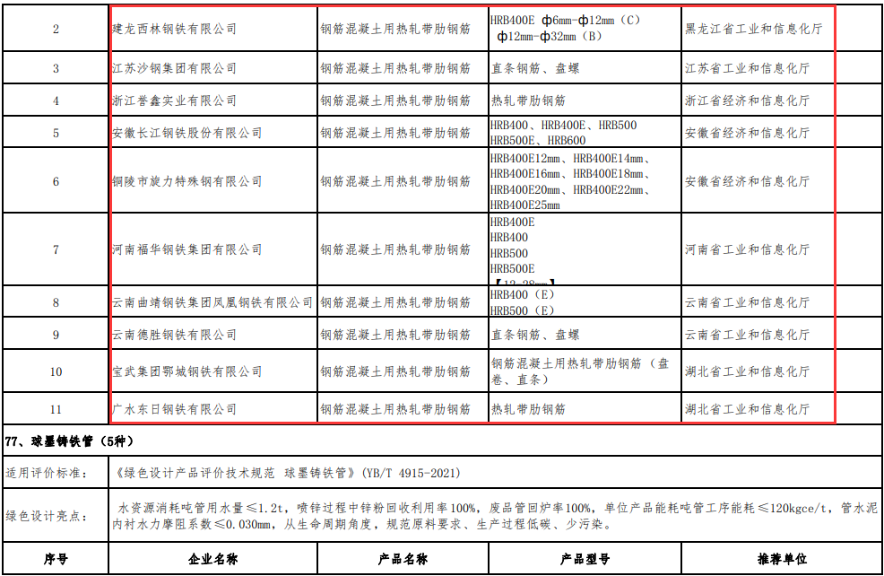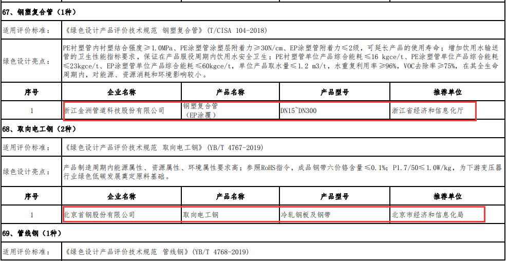 綠色設(shè)計(jì)產(chǎn)品名單(鋼鐵產(chǎn)品39種)