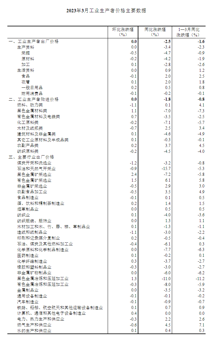 一、3月份工業(yè)生產(chǎn)者價格同比變動情況